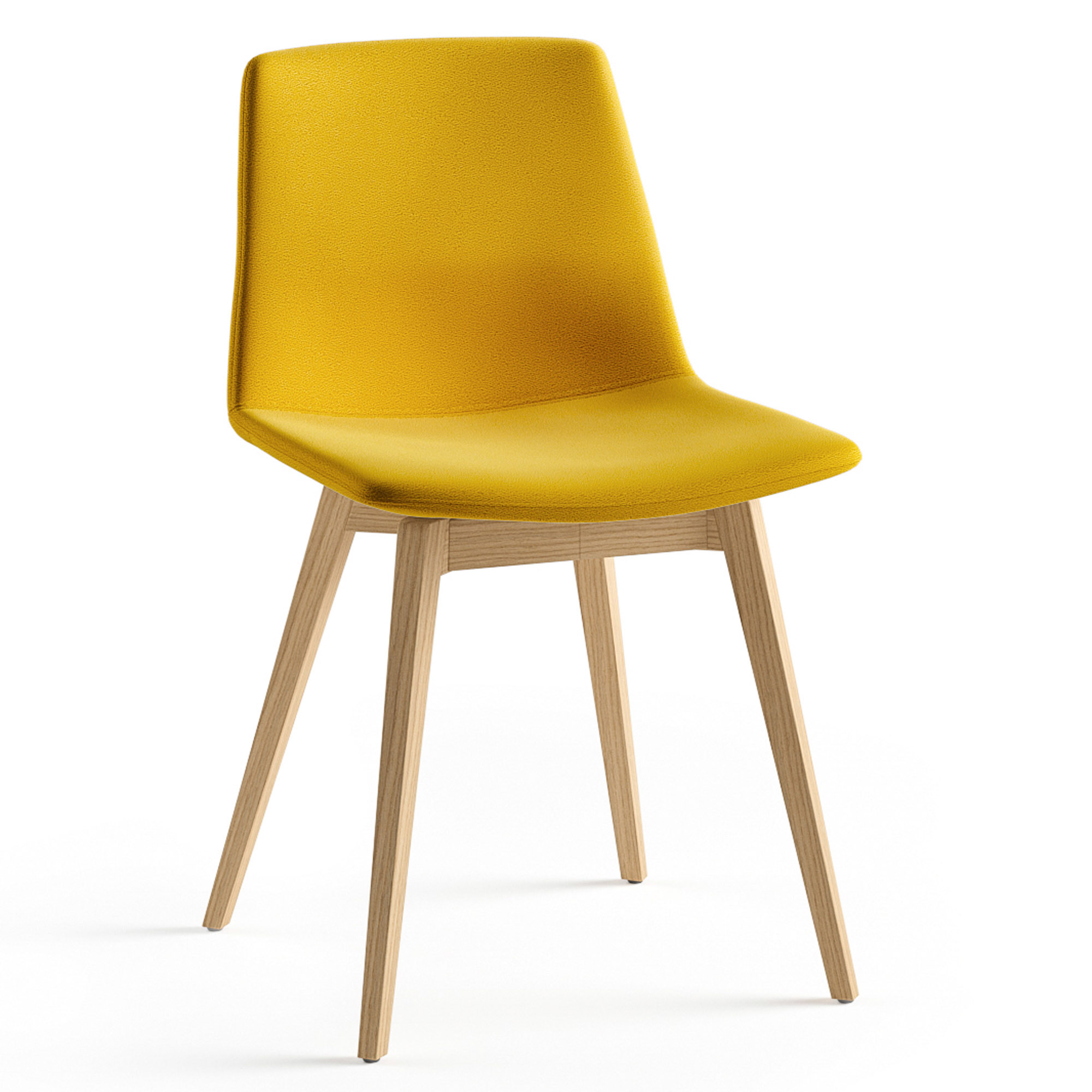 Matière : Coque en polypropylène, épaisseur 8 mm. Tissu 100% polyester non feu M1. Piètement en frêne massif vernis naturel équipé de patins en nylon. Moussage : Densité assise et dossier 50 kg/m³. Dimensions : L 47 x P 51 x H 81,5 cm. Dossier 38 cm. Existe en version simili cuir sous la Réf. 704-891.