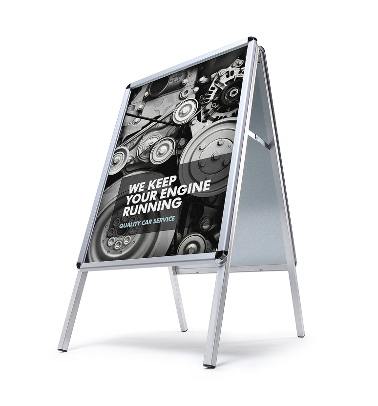 Le Chevalet extérieur est une solution idéale pour captiver l’attention des passants, offrant un design léger et une utilisation simplifiée pour un changement rapide de vos affiches. Parfaitement adapté aux hôtels, magasins, restaurants, cafés ou événements, il se distingue comme un atout incontournable pour vos campagnes marketing dans des environnements protégés et peu venteux. Célébré comme le produit phare parmi les stop-trottoirs, le chevalet maximise l'impact visuel de votre marque. Accroissez la notoriété de votre enseigne grâce à sa topcard double face, conçue pour mettre en valeur votre logo ou publicité dans toutes les directions. Spécialement conçue pour les chevalets de format A1 avec un profil de 30 ou 32 mm, la topcard s’installe aisément, boostant ainsi la visibilité et l'attrait de votre communication extérieure.