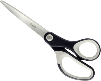 Description détailléePour droitiers, revêtus de titan, ciseaux premiuminoxydables, en acier inoxydable, poignée ergonomique,matériau soft-touch, avec vis pour réajustement,emballage blister