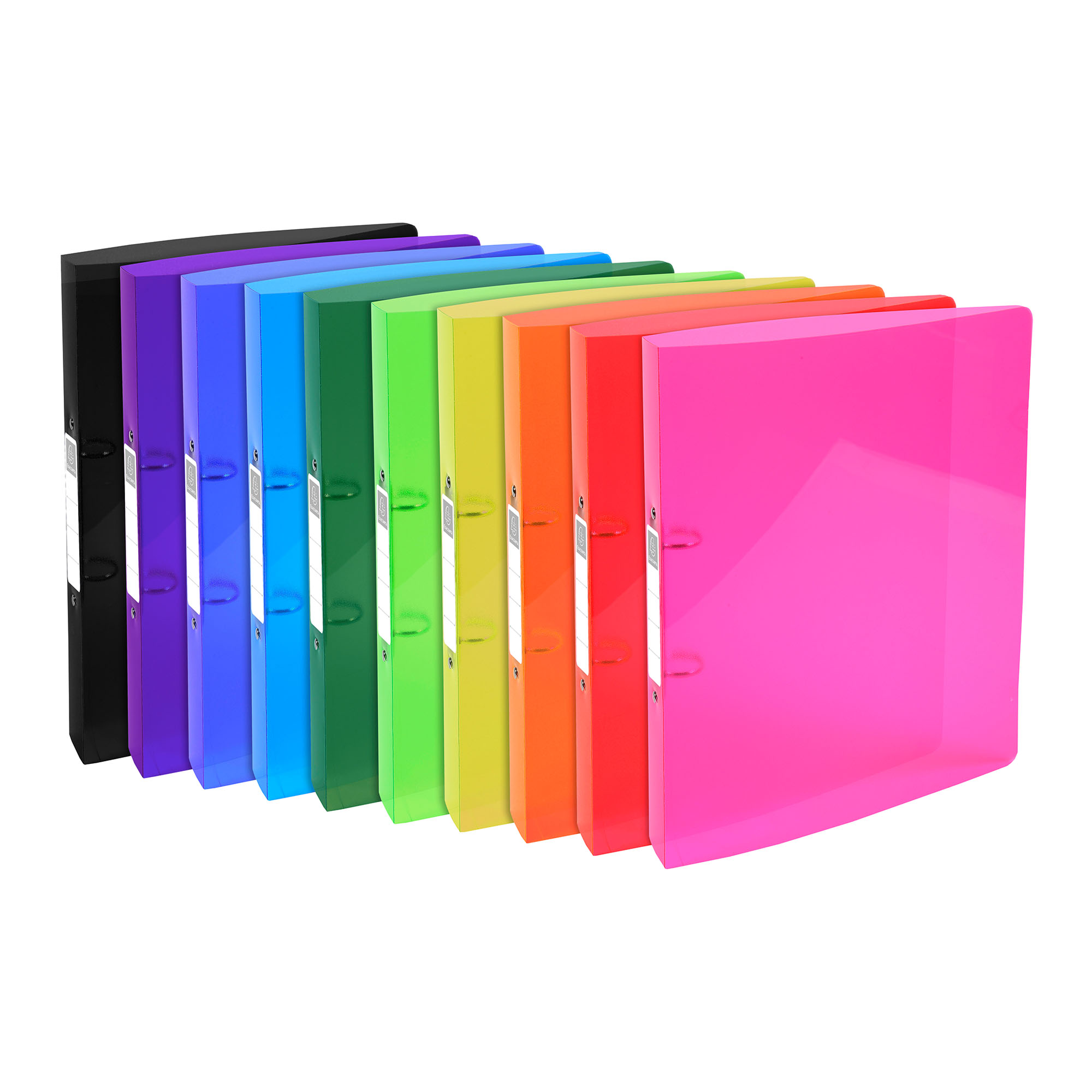 Classeur 2 anneaux format A4 maxi plastifié Exacompta Iderama - Dos 4 cm couleurs assorties pour classer indifféremment des feuilles ou des pochettes sans jamais dépasser.