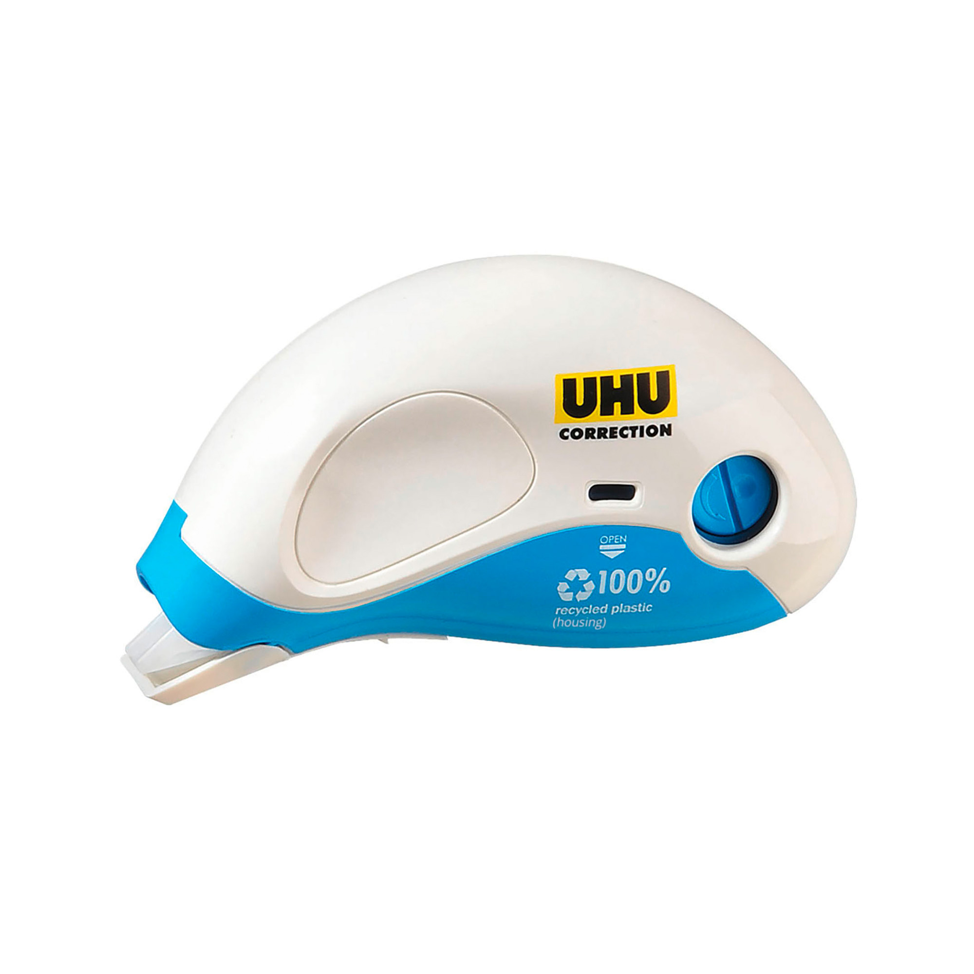 Description détailléeRoller correcteur rechargeable, le système de recharge écologique et facile à installer pour les grands utilisateurs soucieux de l’environnement. Pour une correction rapide et précise de textes imprimés ou manuscrits. Convient à presque tous les types de papier. Réécriture immédiate, sans temps de séchage et sans solvant. Avec capuchon intégré pour la protection du ruban et support de maintien, contrôle de niveau du ruban et vis de serrage du ruban. La longueur du ruban est de 14 m, la largeur du ruban est de 4,2 mm. Le roller (à l’exception du ruban) est composé à 100 % de plastique recyclé et l’emballage est composé à plus de 85 % de carton recyclé.Ce produit est écoresponsable car il a été fabriqué à base de 100 % minimum de matériau recyclé.