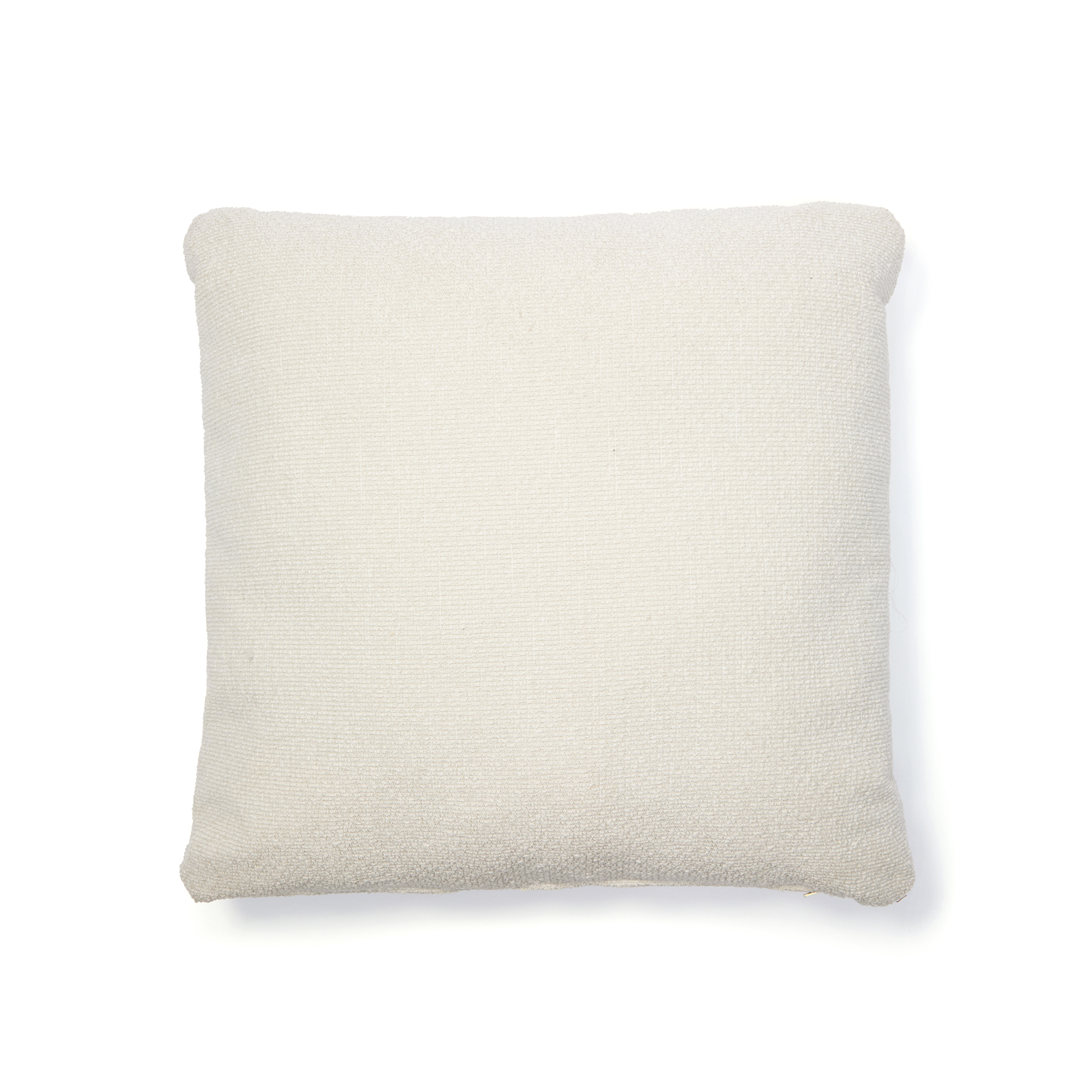 • Coussin en tissu de couleur écrue à petite structure et doux au toucher.