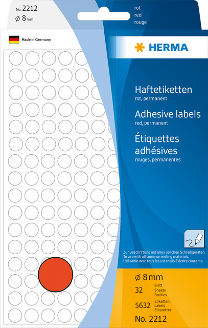 Etiquette HERMA 2212 rond 8mm rouge 5632 pièces