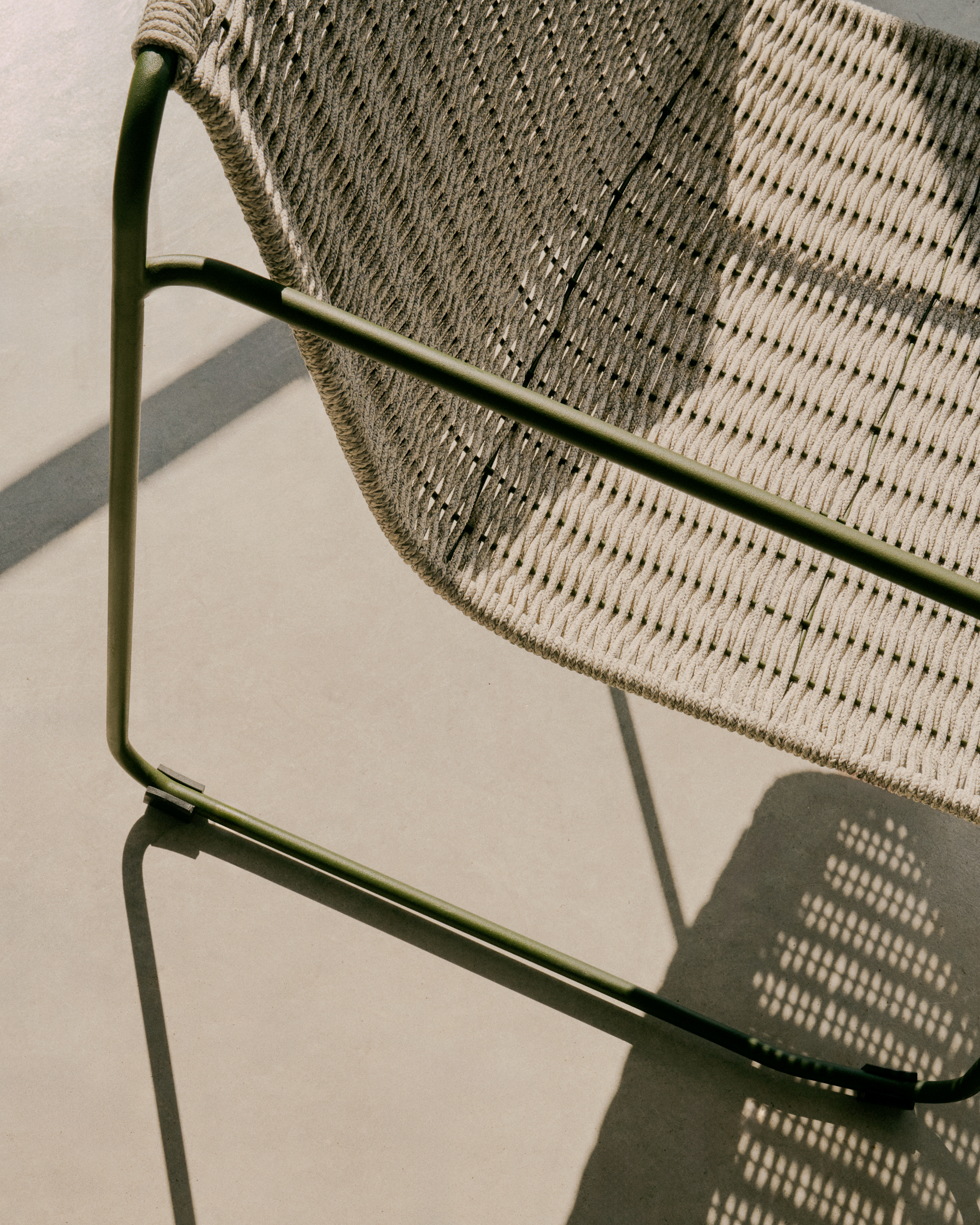 Ce fauteuil, conçu en exclusivité par Yonoh Studio pour Kave Home, réinterprète le style méditerranéen à travers un prisme contemporain et vibrant. Sa structure en acier galvanisé résistant à l’oxydation et à la corrosion se démarque par sa durabilité et par sa capacité à s’accorder à tous les types d’extérieurs. L’assise et le dossier sont élaborés en corde tressée à la main et résistante aux rayons UV, rattachée à une structure en tiges, qui offre confort et style unique. Son design de type « luge » et les dimensions généreuses de l’assise assurent un confort inégalé. Cette pièce fait partie de la collection Maurina, qui associe la beauté des matériaux traditionnels et de l’artisanat à des lignes contemporaines, idéale pour ceux qui souhaitent un espace à la fois intemporel et actuel.
