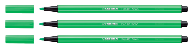 Le Pen 68 est disponible dans un grand nombre de couleurs vives, y compris des tons néon et pastel. Cette diversité garantit une créativité permanente - c'est pourquoi le STABILO Pen 68 s'inscrit parfaitement dans les tendances actuelles telles que le handlettering, le journaling ou le sketchnote. Les amateurs d'art mandala et tous ceux qui préfèrent dessiner ou peindre seront également enthousiasmés par la polyvalence de ce stylo-feutre de haute qualité. La pointe robuste permet d'obtenir des couleurs homogènes et est parfaite pour tracer facilement des lignes épaisses ou remplir de grandes surfaces. La pointe peut rester décapuchonnée jusqu'à 24 heures sans sécher, ce qui est idéal pour travailler sur votre projet créatif. Les couleurs peuvent être mélangées avec de l'eau pour obtenir de magnifiques effets d'aquarelle. Le Pen 68 est plus durable que jamais : désormais, le capuchon et le corps du stylo sont composés à 96% de plastique biosourcé, conformément à l'approche du bilan de masse.* Produit en Allemagne * Le capuchon et le corps du stylo sont composés à 96% de plastique biosourcé, conformément à la méthode du bilan de masse.* L'encre à base d'eau peut être mélangée à de l'eau pour obtenir de magnifiques effets d'aquarelle.* Pointe M robuste d'environ 1mm* Peut rester sans capuchon jusqu'à 24 heures sans se dessécher* Le capuchon s'insère au dos du feutre* Disponible en 65 couleurs. Toutes les couleurs sont disponibles séparément * STABILO Pen 68 feutre de qualité supérieure en couleur : néon vert (33)