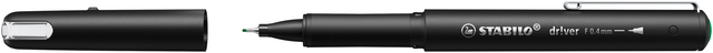 * Le fineliner STABILO dr!ver est le stylo idéal pour toutes les occasions d'écrire. * Au bureau, pendant les études ou à la maison, ce fineliner est un stylo intemporel et élégant. * La pointe, d'une largeur de 0,4 mm, s'adapte à la pression d'écriture pour une expérience d'écriture optimale. * Le stylo peut facilement être emporté dans votre poche ou votre sac sans tacher ou se perdre, grâce au capuchon et à l'agrafe en métal. * Couleur d'écriture : vert.