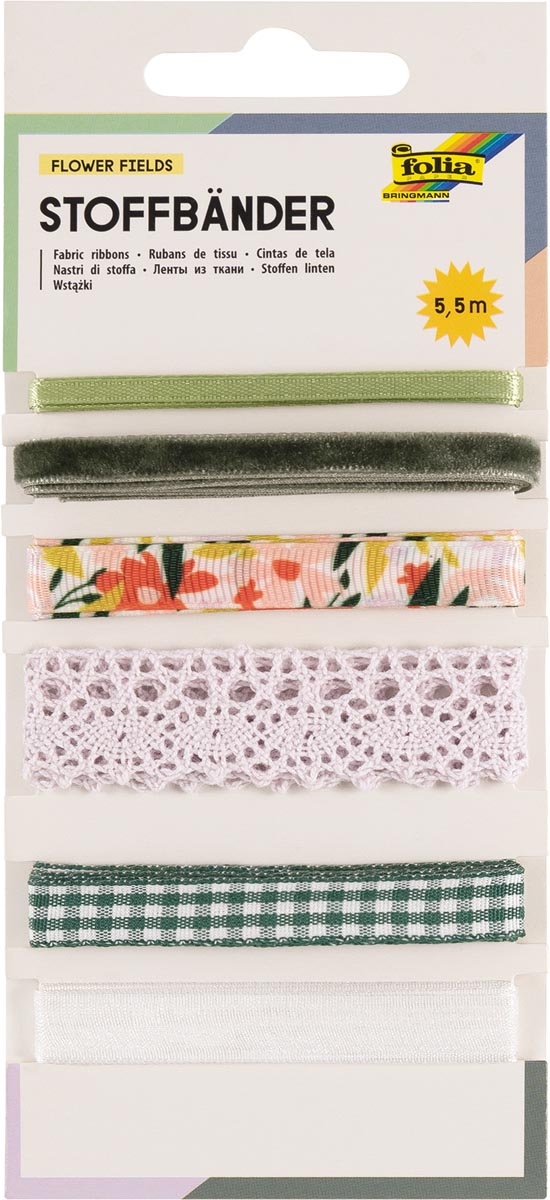 Sublimez vos créations avec le Ruban en tissu set Flower Fields de la marque Folia, idéal pour ajouter une touche d'élégance et de finesse à vos projets professionnels. Ce set se compose de 6 pièces de rubans aux couleurs assorties, conçus en polyester, nylon et coton, garantissant ainsi une qualité supérieure et une durabilité accrue.