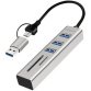 Description détailléeEntrée: câble 2 en 1 avec USB-A/USB-C mâle (150 mm), sortie: 3x USB-A femelle, 1x fiche SD & 1x fiche microSD, avec protection de l'appareil, boîtier en aluminium, dimensions: (L)23 x (P)99 x (H)16,5 mm