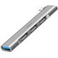 Description détailléeEntrée: USB-C mâle, compatible Thunderbolt 3/4, sortie: 1x USB-A 3.0 femelle & 3x USB-A 2.0 femelle, taux de transfert: 5 Gbps, puissance de sortie USB-A: 5 V/0,9 A (4,5W par port) couleur: argent, dimensions: (L)92 x (P)26 x (H)7 mm