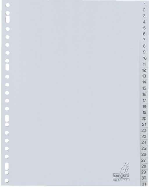 Intercalaire Kangaro G431CM A4 23 perforations numéro 1-31 PP gris