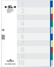 Les 10 onglets multicolores vous permettent de personnaliser vos classements selon vos besoins et de repérer rapidement la section souhaitée. Vous disposez également d'une page de garde pour présenter et identifier rapidement le contenu de votre classeur.