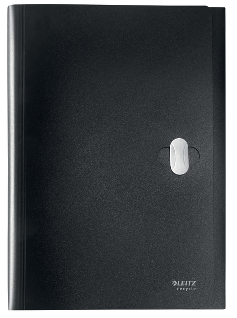 Description détailléePour ft A4 (24 x 33 cm) 5 compartiments extensibles En PP 80 % recyclé Avec bouton rotatif Capacité: 250 feuilles Couleur: noir Certificat Ange Bleu