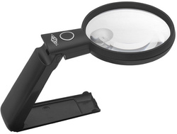 Description détailléeLoupe à main & de table en un, 2 LED, tête de loupe réglablelentille en verre acrylique de 90 mm de diamètre, agrandis-sement 2x, petite lentille supplémentaire de 2,5 mm dediamètre, agrandissement 4x, 2 piles micro 1,5V AAA incl.