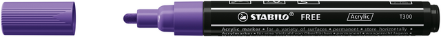 * Sortez de votre zone de confort et osez créer avec les marqueurs peinture STABILO FREE Acrylic! * Dessinez, coloriez, personnalisez sans limites, sur de nombreuses surfaces (du papier à la pierre en passant par la céramique, le cuir, le tissu, le métal, le verre ou le bois). * Les marqueurs STABILO FREE Acrylic T300 sont dotés d'une pointe ogive amovible de 2-3mm, qui peut être retirée et retournée pour utiliser les 2 extrémités et prolonger ainsi la durée de vie du marqueur. * Le marquer est facile à utiliser : * 1. Secouez vigoureusement le stylo fermé pendant 30 secondes avec le capuchon fermé jusqu'à ce que les billes à l'intérieur bougent librement. Cela permet de répartir les pigments de manière uniforme. * 2. Appuyez la pointe 1-2 fois sur une feuille de papier et laissez la peinture couler dans la pointe. * 3. Laissez-vous aller à la fantaisie! * Marqueur acrylique à encre pigmentée, séchage mat satiné. * Opaque, résistant à la lumière et permanent sur différentes surfaces. * Les couleurs peuvent être mélangées à l'état humide, les couches sèches peuvent être repeintes. * Le corps du stylo est composé avec plus de 50% de plastique recyclé, l'emballage en carton est composé de carton certifié FSC®. * 3 modèles avec différentes pointes et différentes couleurs. * Couleur d'écriture : violet. * Tout est possible! Le marqueur acrylique polyvalent impressionne par son design STABILO et sa qualité STABILO.