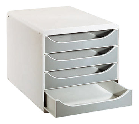Vous apprécierez son coloris gris clair qui s’accorde à toutes sortes de décorations. Pour ce module de classement 4 tiroirs Exacompta, vous avez 2 couleurs de tiroirs au choix : gris ou bleu. Bruneau le vend avec une garantie de 25 ans, gage de sa robustesse.