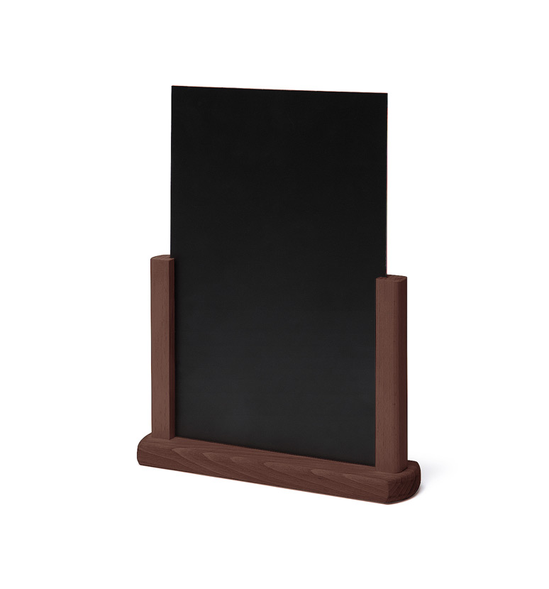 Un tableau noir de table moderne et utile. Le tableau noir de table Natura est idéal pour présenter élégamment des messages, promotions ou offres spéciales. En tant qu'alternative élégante à la signalisation classique, il présente une surface double face en HPL (stratifié haute pression) qui permet une écriture fluide avec des marqueurs à craie. Vous voulez changer de message ? Essuyez simplement avec un chiffon humide pour créer un nouveau texte. Pour une impression permanente de votre logo ou de votre marque, vous pouvez opter pour une impression sur la partie supérieure ou sur toute la surface. Note : Les zones imprimées ne permettent pas l'écriture à la craie. Disponible en deux formats et trois coloris : brun foncé, brun clair ou noir. Surface HPL robuste. Fabriqué en stratifié haute pression (HPL), il assure durabilité et nécessite peu d'entretien. Son design recto verso optimise les messages multiples, idéal pour des changements rapides de contenu. Que vous utilisiez de la craie classique ou des marqueurs à craie colorés, votre texte sera précis et lisible. Un tableau idéal pour les lieux animés comme les cafés, boutiques ou événements. Support en bois dur teinté. Doté de pieds solides en bois dur teinté, il offre une bonne stabilité sur n'importe quel support. Son design compact et portable facilite l'installation et le déplacement. C'est donc une solution pratique et raffinée pour présenter des informations clés ou souligner des offres spéciales. Le support du format A4 est large de 26 cm, celui du format A5 de 20 cm. Aussi disponible avec impression personnalisée. Personnalisez votre tableau avec votre logo, message ou marque. Les impressions sur tableau noir sont réalisées par UV pour une durabilité et une finition de qualité. Le procédé d'impression inclut 3 couches (2 blanches et 1 couleur), garantissant une bonne longévité et éclat. Convient à l'extérieur, sans restriction de couleurs. Choisissez l'option d'impression qui vous convient. Impression sur le haut : Possibilité d'imprimer votre logo sur le haut du tableau. Le motif d'impression montrera clairement l'espace utilisable. Impression complète : Utilise toute la surface pour votre impression. Sélectionnez l'option simple face pour imprimer d'un côté un seul motif. Pour un motif sur les deux faces, choisissez l'option recto verso. Directive pour l'impression personnalisée. Veuillez suivre ces instructions pour préparer votre visuel :. Travaillez en mode couleurs CMJN . Convertir le texte en contours . Utiliser des formes et illustrations vectorielles. Supprimez les lignes de guidage avant d'enregistrer . Enregistrez en format PDF . Remarque : Les zones imprimées ne permettent pas l'écriture à la craie.
