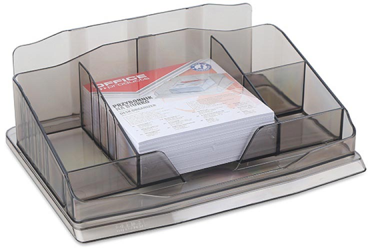 Description détailléeEn plastique Équipé de 6 compartiments: 1 pour la correspondance, 4 pour les petits articles de bureau et 1 pour les notes (inclu)