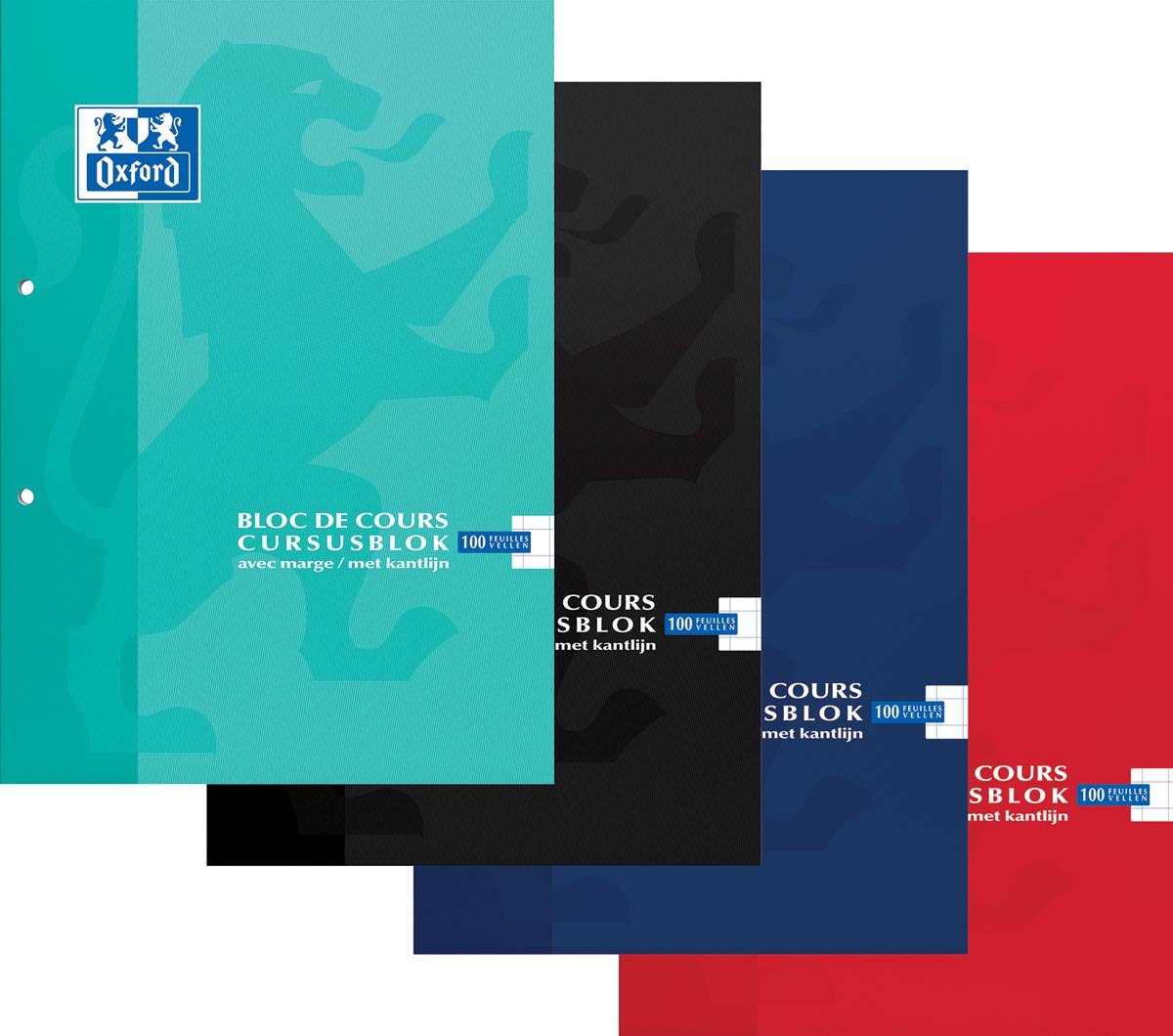 Ft 21 x 29,7 cm (A4). Bloc de 100 feuilles. Préperforé 2 trous. Papier Optik de 90 g/m². Imperméable à l'encre, même en écrivant avec un stylo plume. Couverture en carton. Avec fonction scan. Compatible avec Scribzee app. Couleurs assorties: rouge, aqua, bleu et noir. Certificat: EU Ecolabel
