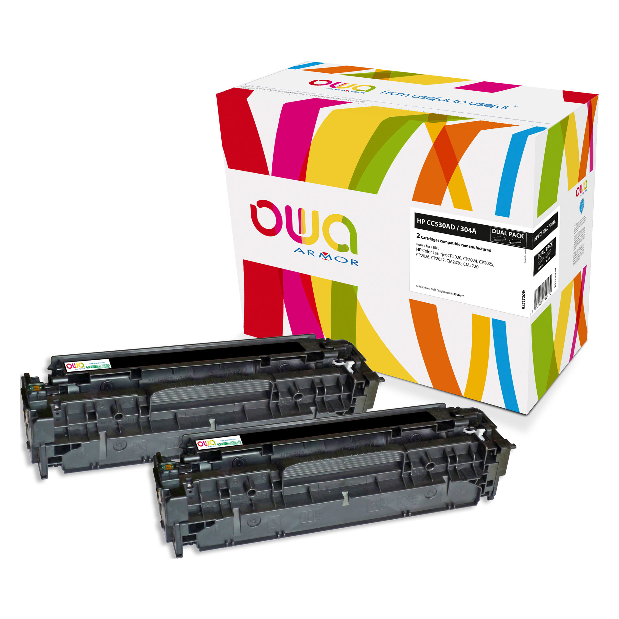 Pack 2 toners noirs Owa compatibles HP 304A - CC530AD