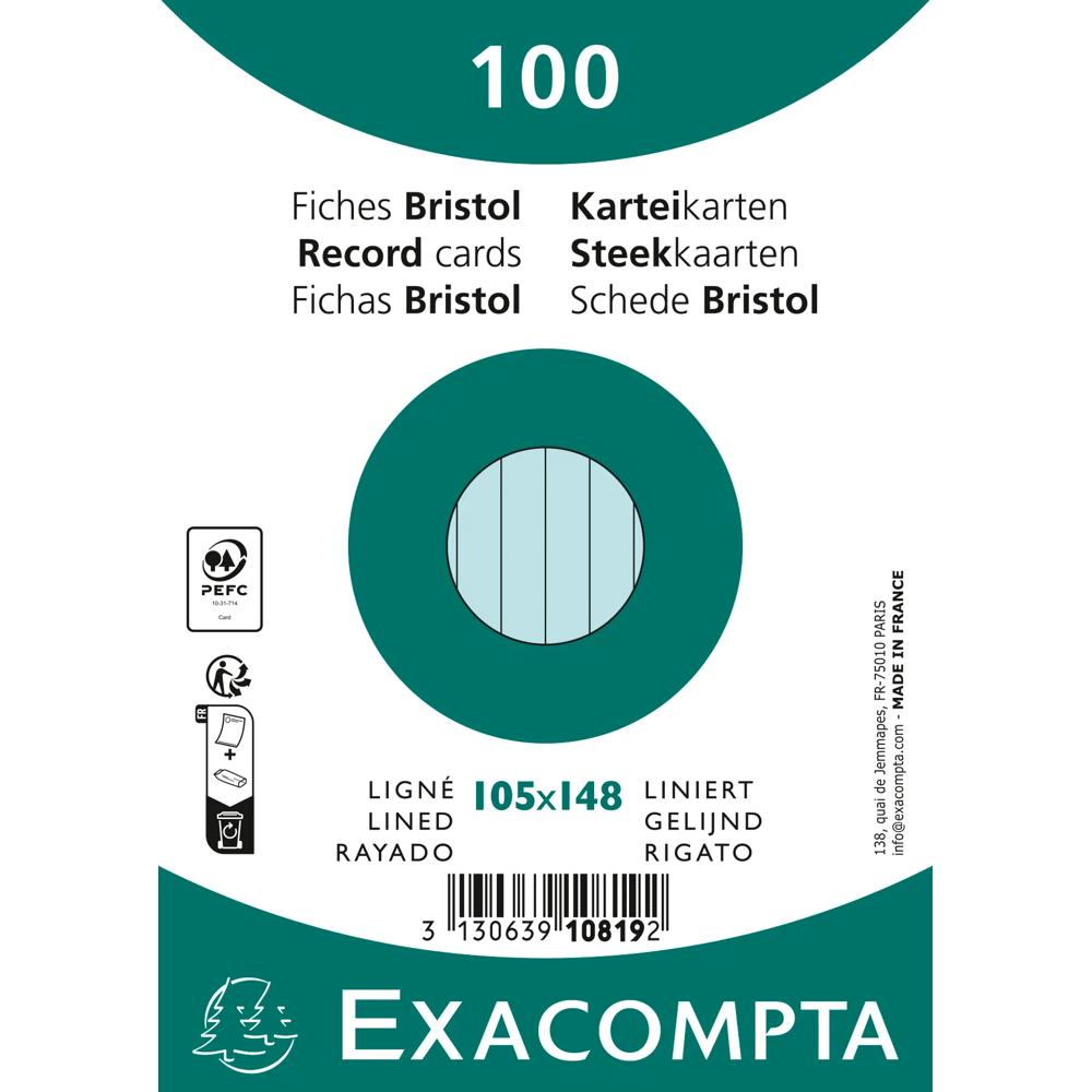 Paquet 100 fiches sous film - bristol ligné non perforé 105x148mm