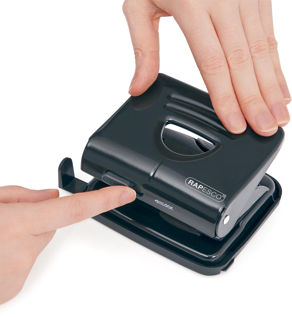 Description détailléeCapacité de perforation: 25 feuilles, en métal, poinçons etpoignée durcis, perforation 2 trous, bac en caoutchouc pourles résidus, poignée verrouillable à plat, fenêtre depersonnalisation, guide papier ajustable