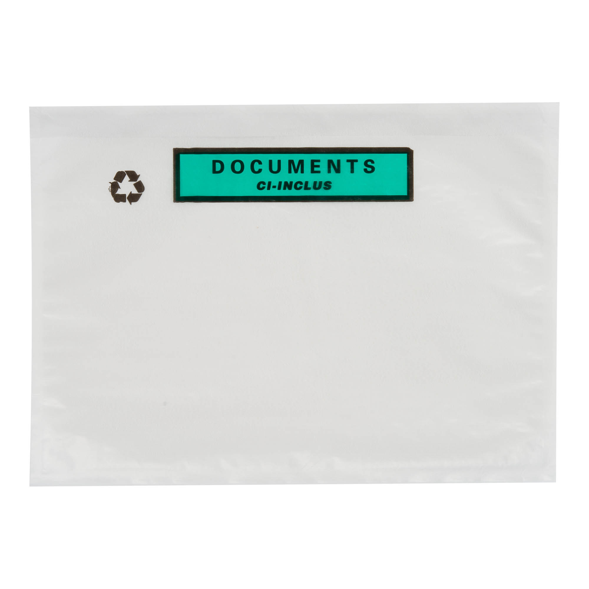 Pochette adhésive "Documents ci-inclus" 100 % recyclable 228 x 165 mm - Boîte de 250