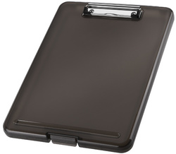 Description détailléeGris translucide, en plastique, résiste à l'eau et au vent,rangement pour documents & stylos, avec pince métal, porte-stylo à l'intérieur, dimensions: (L)240 x (P)340 x (H)20mm