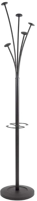 Description détailléePorte-manteau vertical Fabriqué en acier chromé de haute qualité Avec 5 crochets Avec porte-parapluie Couleur: noir