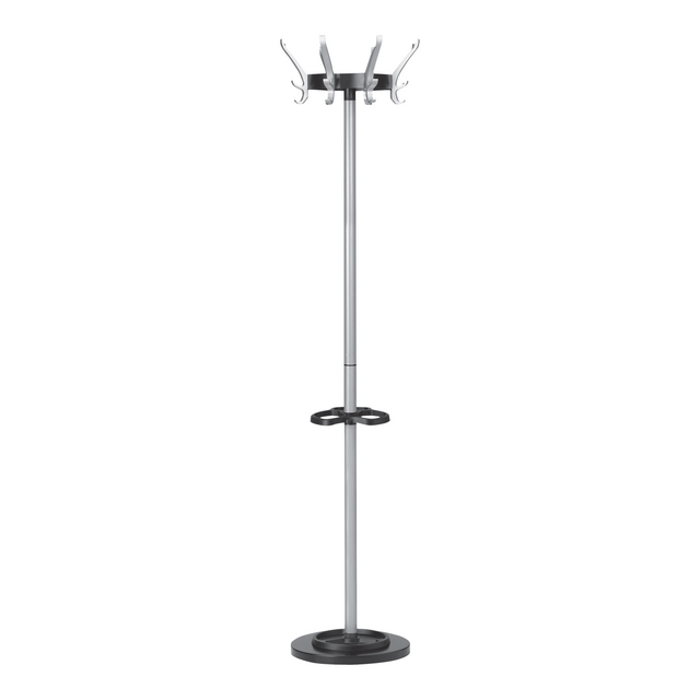 * Le portemanteau CYPRES est équipé de 8 patères triples fixées sur une couronne en acier de haute qualité. * Capacité maximale de 24 vêtements. * Grâce à la couronne rotative, ce portemanteau peut être placé dans un coin du bureau ou contre un mur. * Les crochets triples CYPRES ont des angles arrondis et un design innovant. * En aluminium recyclable. * Le CYPRES est disponible avec un mât en gris métal ou noir profond. * Equipé d’un porte-parapluie pouvant accueillir jusqu’à 9 parapluies. * Le socle lesté de 6kg assure une bonne stabilité. * Idéal dans les zones de passage grâce à son socle lesté. * Pratique: montage facile sans outil. * Le portemanteau est un complément parfait aux lampes Unilux LED et accessoires de bureau (horloge, repose-pieds, produits ergonomiques). * Disponible en 2 coloris: noir profond et gris métal. * 8 crochets triples en aluminium recyclable. Porte-parapluie : pour 9 parapluies. * Dimensions: hauteur 170cm. * Socle lesté : 5,4kg, diamètre 34cm. * Garantie : 2 ans. * Matériaux : portemanteau en métal avec finition peinture époxy, patères en aluminium recyclable et porte-parapluie en polypropylène.