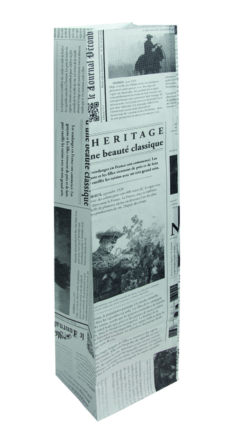 Description détaillée* Ce sachet en papier IEZZY convient à l'emballage des bouteilles (vin). * Format : 10x8x41cm * Design : Le Journal. * Conditionnement par 50 pièces.