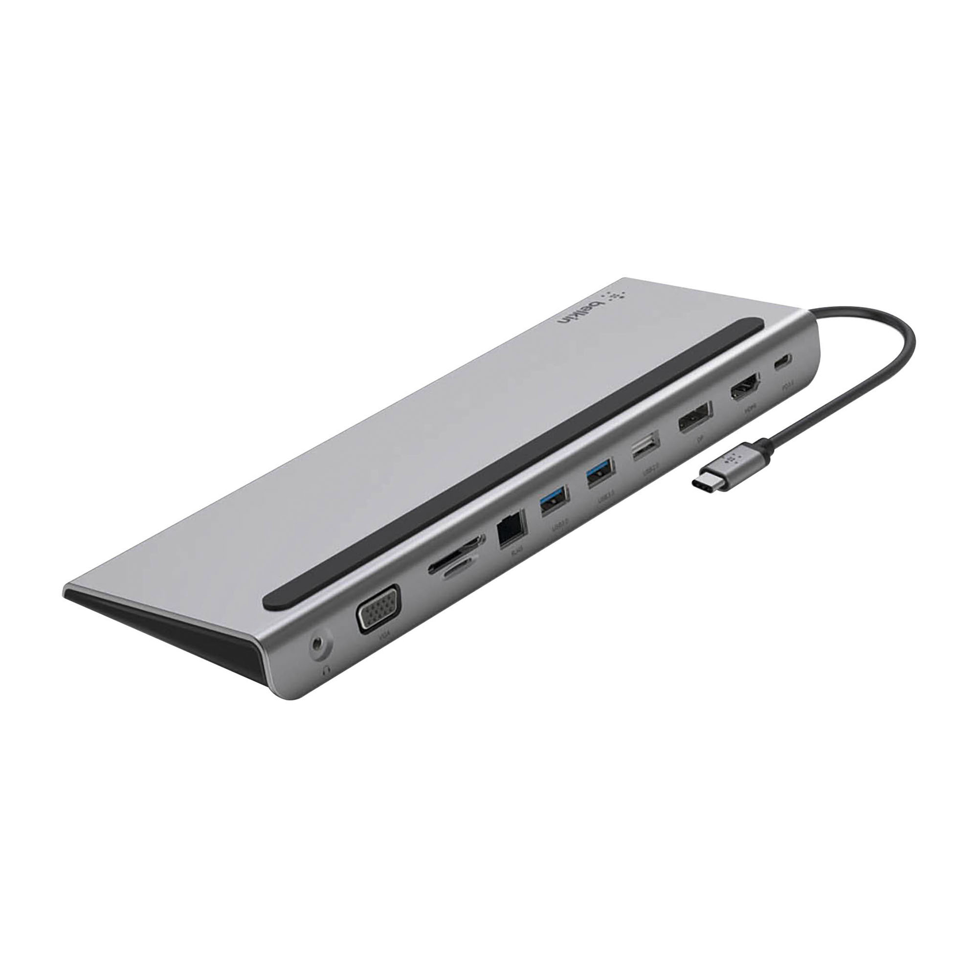 La station d'accueil 11-en-1 peut faire office de support pour ordinateur portable. Vous pouvez ainsi créer un espace de travail parfait sans perdre aucune place sur votre bureau. Situés sur le panneau arrière, tous les ports du dock sont faciles d'accès et d'utilisation.