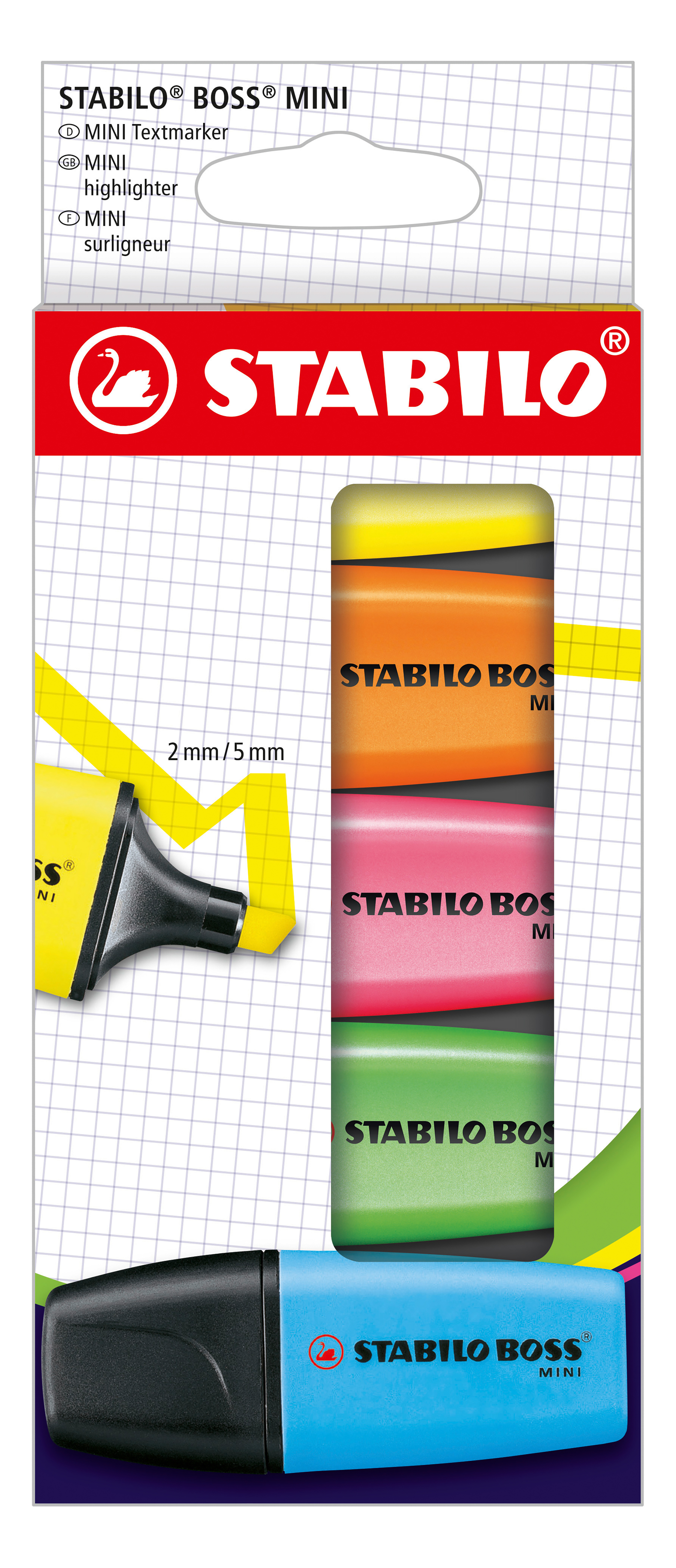 Pratique : un format mini adapté aux trousses et poches offrant tous les avantages et la qualité de son grand frère Stabilo Boss original