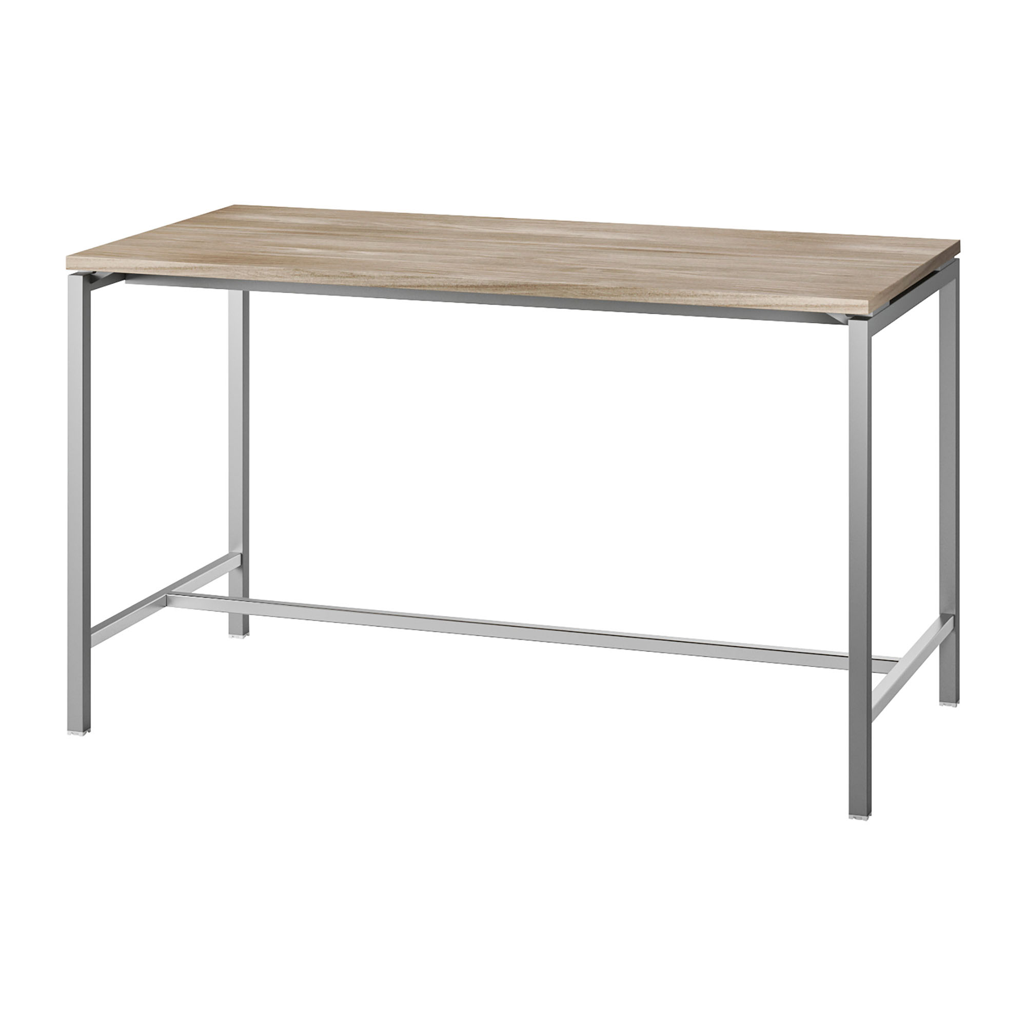 Pieds en tube d'acier à section carré 40 x 40 mm épaisseur 1,5 mm liés par poutres en tube d'acier section rectangulaire 60 x 30 épaisseur 1 mm, verni à poudres époxy. Pieds équipés de vérins pour ajuster la hauteur selon les imperfections du sol.