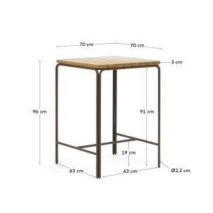 Table haute d'extérieur Salguer - bois acacia massif pied acier marron L 70 x P 70 cm
