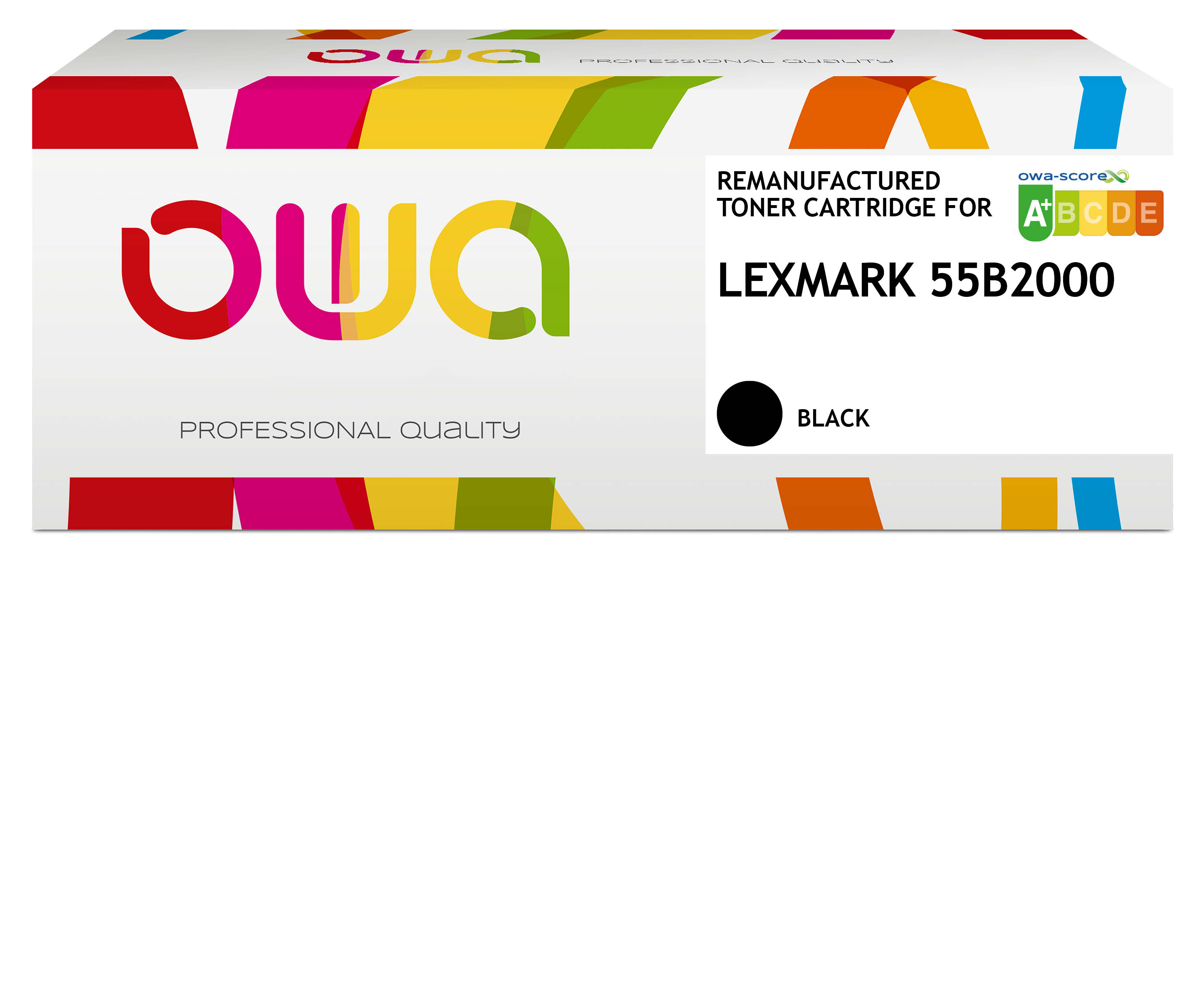 Autres cartouches avec les mêmes compatibilitésToner remanufacturé OWA - haute capacité - Noir - pour LEXMARK 55B2H00à partir de339 € htCartouche toner Lexmak 55B2H00 prebate noir540 € ht405 € htPromo -25%LEXMARK Toner noir 55B200E pour imprimante laserà partir de105 € htLexmark 55B2000 Toner noir pour imprimante laserà partir de105 € ht