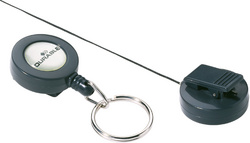 ProductinformatieUittrekbaar koord in een kunststof houder Met sleutelring Voorzien van een kunststof klem op de achterzijde Ringdiameter 25mm Lengte van het koord ca 80cm.