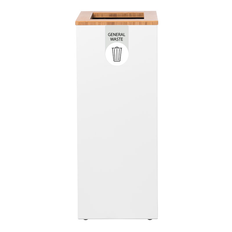 Galvaniseerd stalen sorteereenheid met elegant en duurzaam open deksel van bamboe, met kleurgecodeerde invoeraanduiding en label. Gemakkelijk te legen. Moduleer- en koppelbaar. Doordat de elementen met magneten worden verbonden, kunnen de vuilnisbakken langs de lengte worden bevestigd, maar ook in een vierkant of rechthoek. Dit maakt de Paxa zeer flexibel en een ideale oplossing voor afvalscheiding op elke locatie.