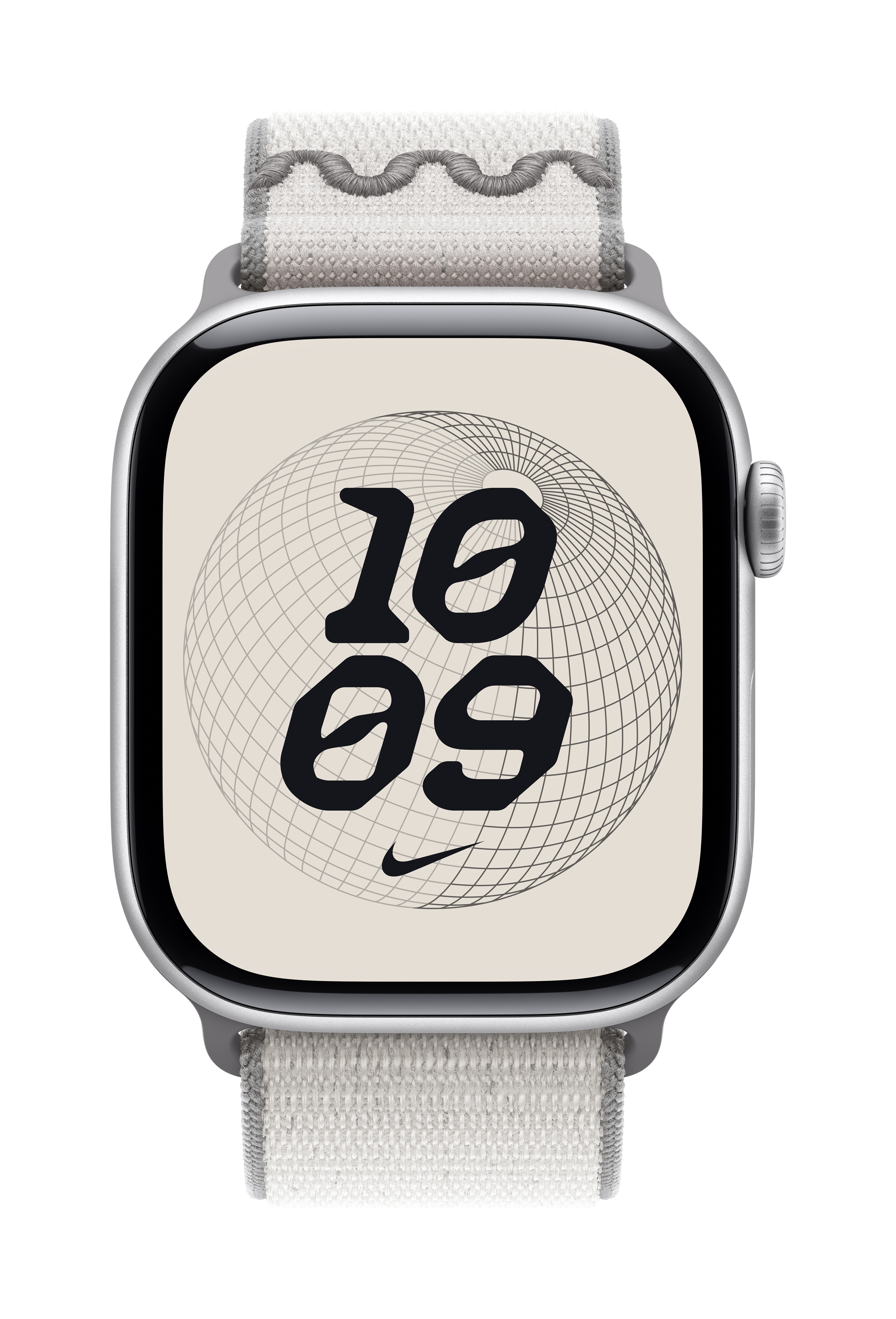 Het vernieuwde geweven sportbandje van Nike is gemaakt van zacht, ademend en licht materiaal met een subtiele glans door de reflecterende draden die erin zijn verwerkt. Het bandje is eenvoudig verstelbaar met klittenband en heeft een handige treksluiting met Run Swoosh-logo. De binnenzijde van dit tweelaags geweven nylon sportbandje bevat een groot aantal kleine lusjes die een zacht laagje vormen en tegelijkertijd voor ventilatie zorgen.