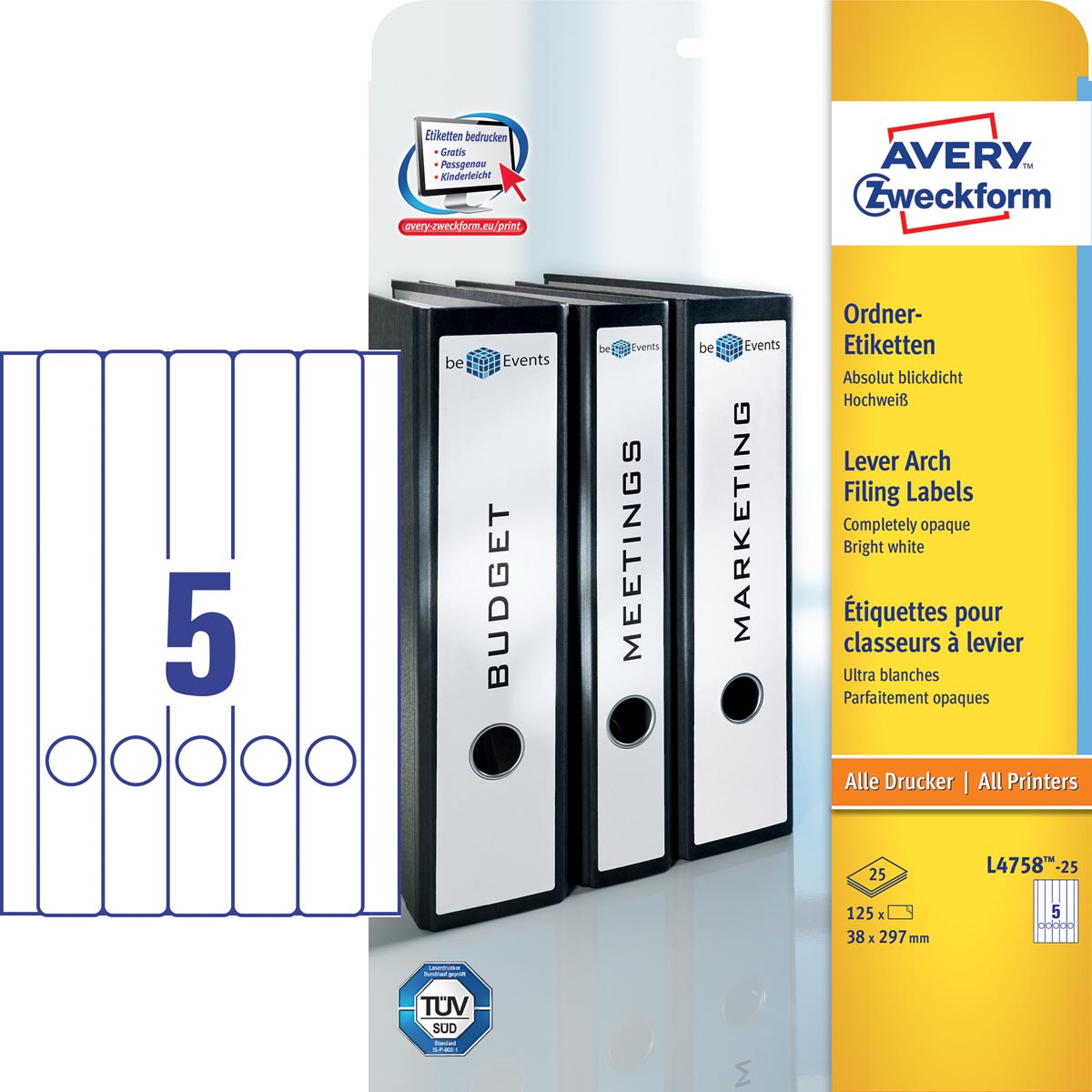 Breng kleur in het kantoor en gelijk ook overzicht in uw archief. U kunt uw archiefmateriaal overzichtelijk op thema sorteren. Zo heeft u snel de juiste ordner te pakken. Een voorbeeld voor het gebruik van verschillende kleuren kan zijn: blauw voor uw financiën en rood voor de marketingmap Bedenk een kleurcoderingssysteem die geschikt is voor uw bedrijf - wij bieden een ruim assortiment aan van gekleurde ordnerrugetiketten. In combinatie met de gratis Avery Zweckform templates en software-oplossingen, kuntu etiket snel en eenvoudig ontwerpen en afdrukken. Uw kantoor zal er zeker van oppeppen! Makkelijk te ontwerpen en te bedrukken dankzij de gratis Avery Design & Print software. Specificaties: Met ultragrip 100 % opaak: kunnen over oude labels geplaatst worden Permanent Meer grip, dus nauwkeurigere doorvoer in uw printer 100 % storingsvrij en perfect uitgelijnde afdrukken Makkelijk te ontwerpen en te bedrukken dankzij de gratis Avery Design & Print software Voor kopieertoestellen, inkjet- en laserprinters FSC Mix gecertificeerd.