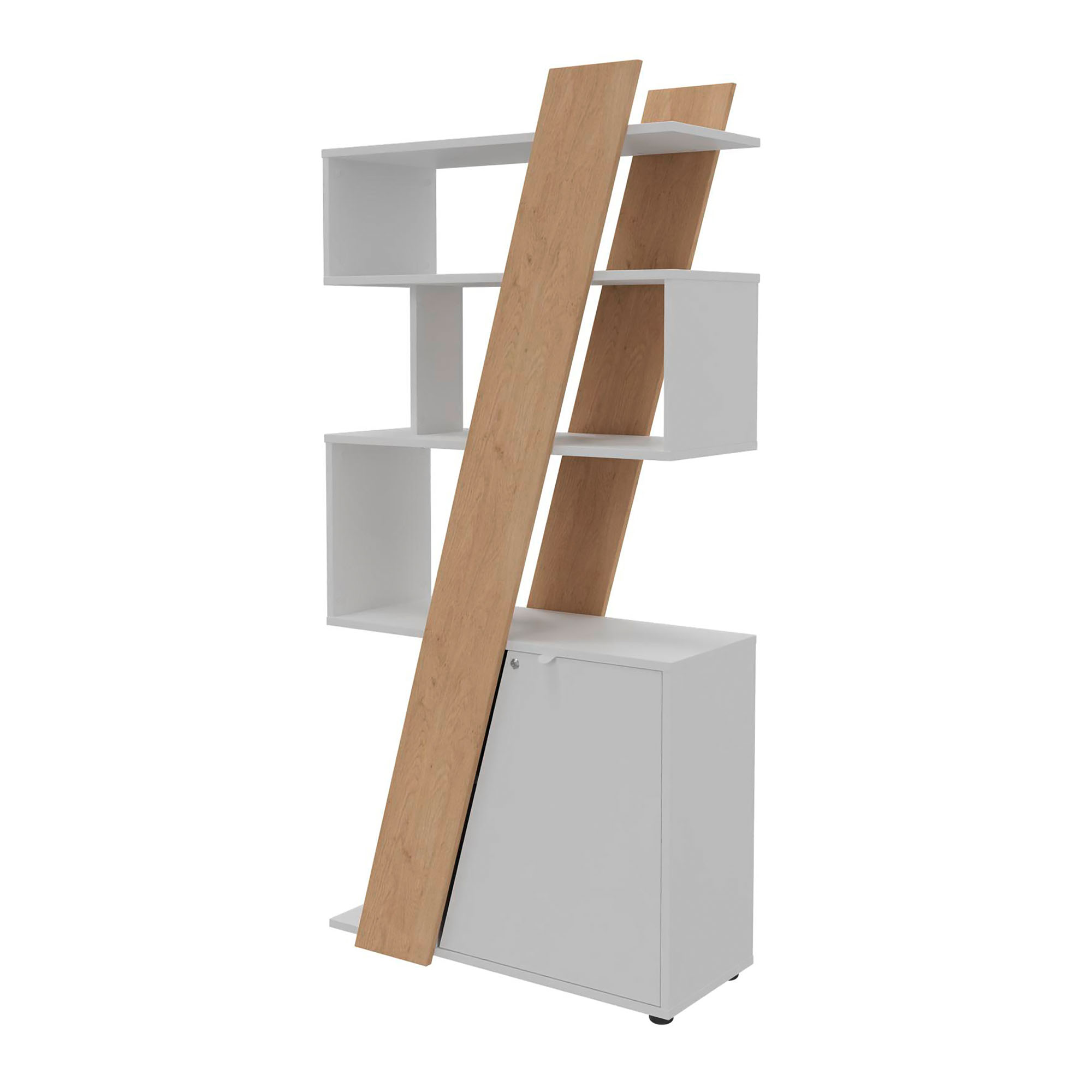 Vervolledig uw opbergruimte met deze originele en design boekenkast van Helyos, gekenmerkt door zijn asymmetrie en verschillende hoogtes voor diverse soorten opslag, zowel open als gesloten.