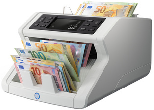 Biljettelmachine die de waarde van ongesorteerde Eurobiljetten en Britse Ponden telt Tel uw geld met gemak en zekerheid Telt nauwkeurig de waarde van ongesorteerde Eurobiljetten en Britse Ponden, en verifieert deze tegelijkertijd op tot wel vijf echtheidskenmerken Zo bespaart u waardevolle tijd Dankzij het intuïtieve ontwerp, het verbeterde display en de handige telfuncties, wordt het tellen van geld eenvoudiger dan ooit Telt gesorteerde bankbiljetten voor alle valuta’s Telt de waarde van tot wel 1.200 bankbiljetten per minuut Verifieert bankbiljetten op basis van vijf echtheidskenmerken: ultraviolet inkt, magnetische inkt, kleur, afmetingen en dikte Stopt met tellen en geeft een hoorbaar en zichtbaar alarm als er een verdacht bankbiljet wordt gedetecteerd Start automatisch met het tellen van de ingevoerde stapel met de auto start functie Maakt gelijke stapels bankbiljetten met de batch-functie Telt het aantal bankbiljetten van verschillende runs bij elkaar op met de add-functie Toont een compleet overzicht van de totale hoeveelheid en waarde per denominatie Gemakkelijk te bedienen dankzij het grote 3.9 inch display en de duidelijke knoppen Gratis valuta-updates kunnen gedownload worden als er een nieuw biljet wordt uitgebracht In andere documentatie kan dit model ook worden aangeduid als de Safescan 2265 G2.