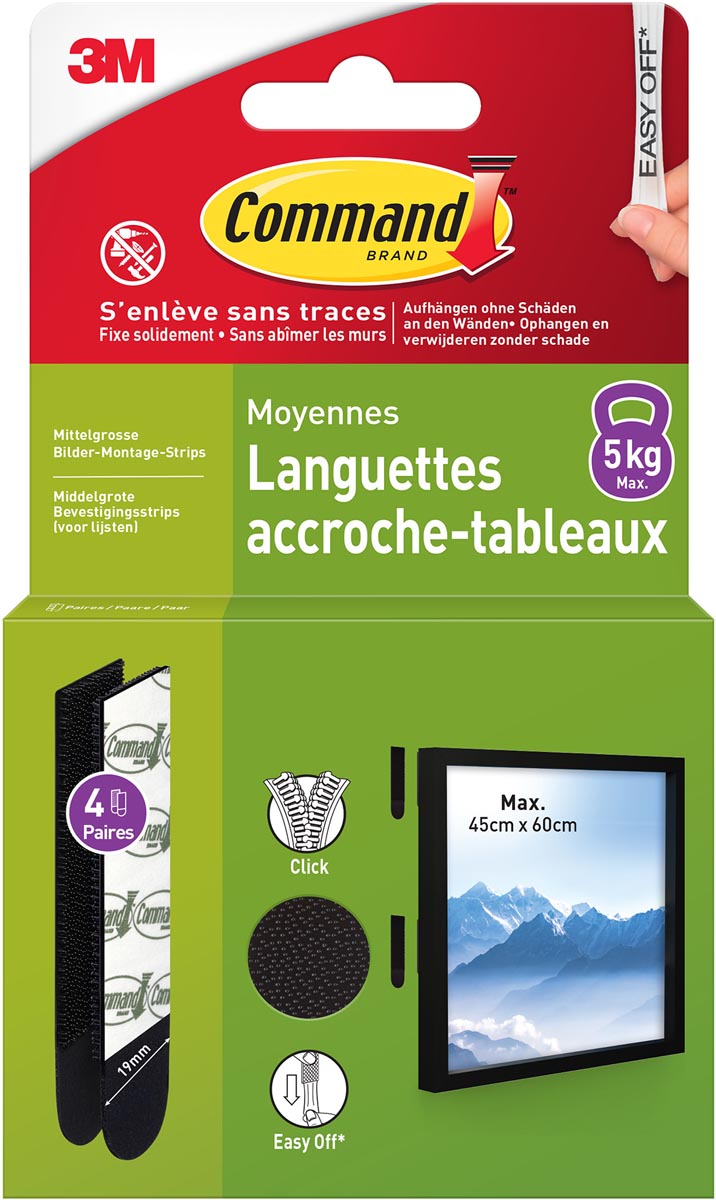 Herbruikbare bevestigingsstrips om producten opnieuw op te hangen, om schoon te maken, de kamer opnieuw in te richten of een object een andere plek te geven. Hecht goed aan een grote diversiteit van oppervlakken, zoals tegels, hout, metaal en geschilderdeondergronden. Kan eenvoudig en spoorloos worden verwijderd: geen gaten, beschadigingen, kleefresten of vlekken. Ook ideaal als vervanging voor dubbelzijdige tape. Niet gebruiken op behang of andere kwetsbare ondergronden. Niet gebruiken om waardevolle objecten aan op te hangen. Enkel binnenshuis gebruiken. Foutief verwijderen kan schade veroorzaken.