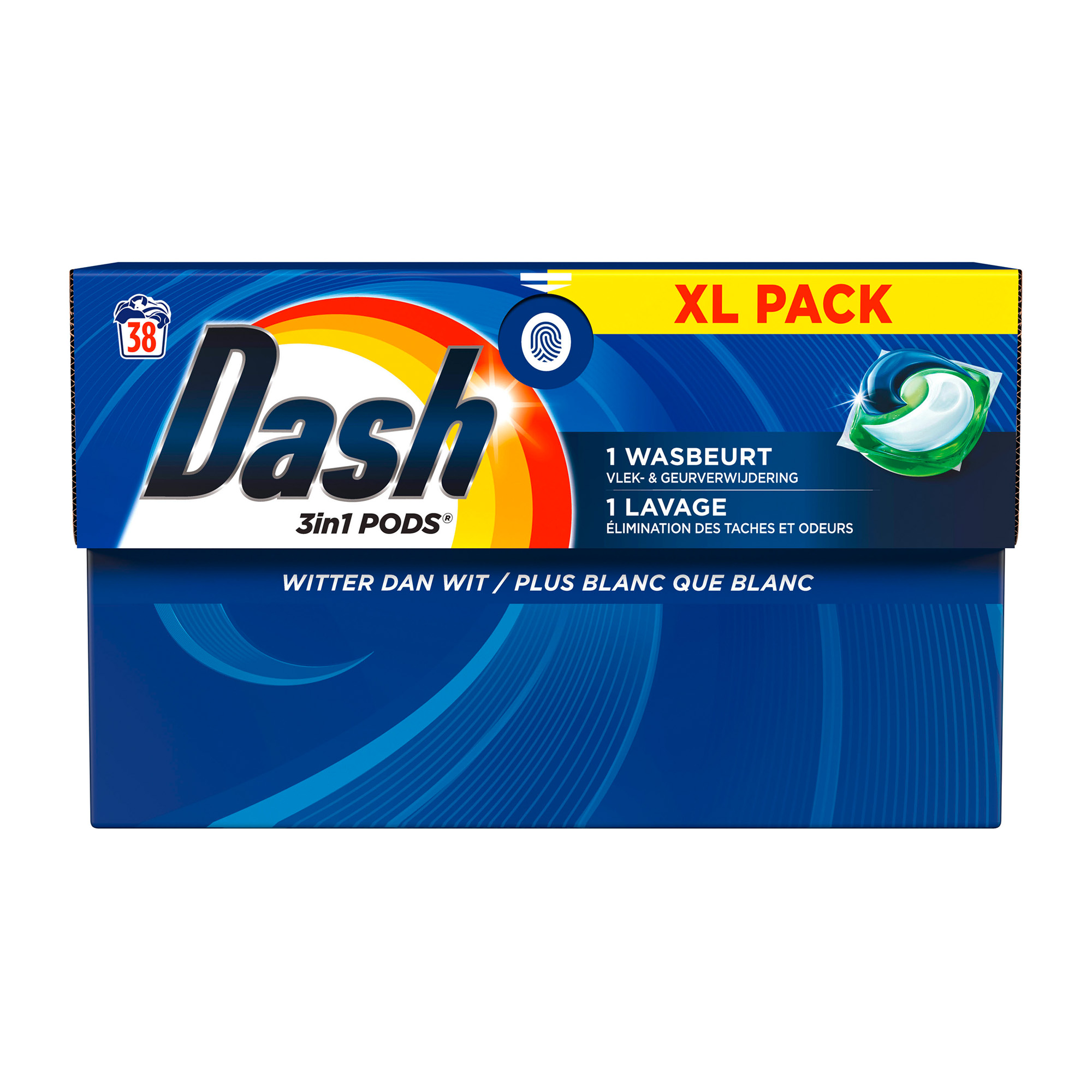 Dash All in 1 wasmiddel Pods, wast Witter dan Wit, reinigt kristallen en geeft een onweerstaanbare geur, zelfs bij koudere temperaturen.
