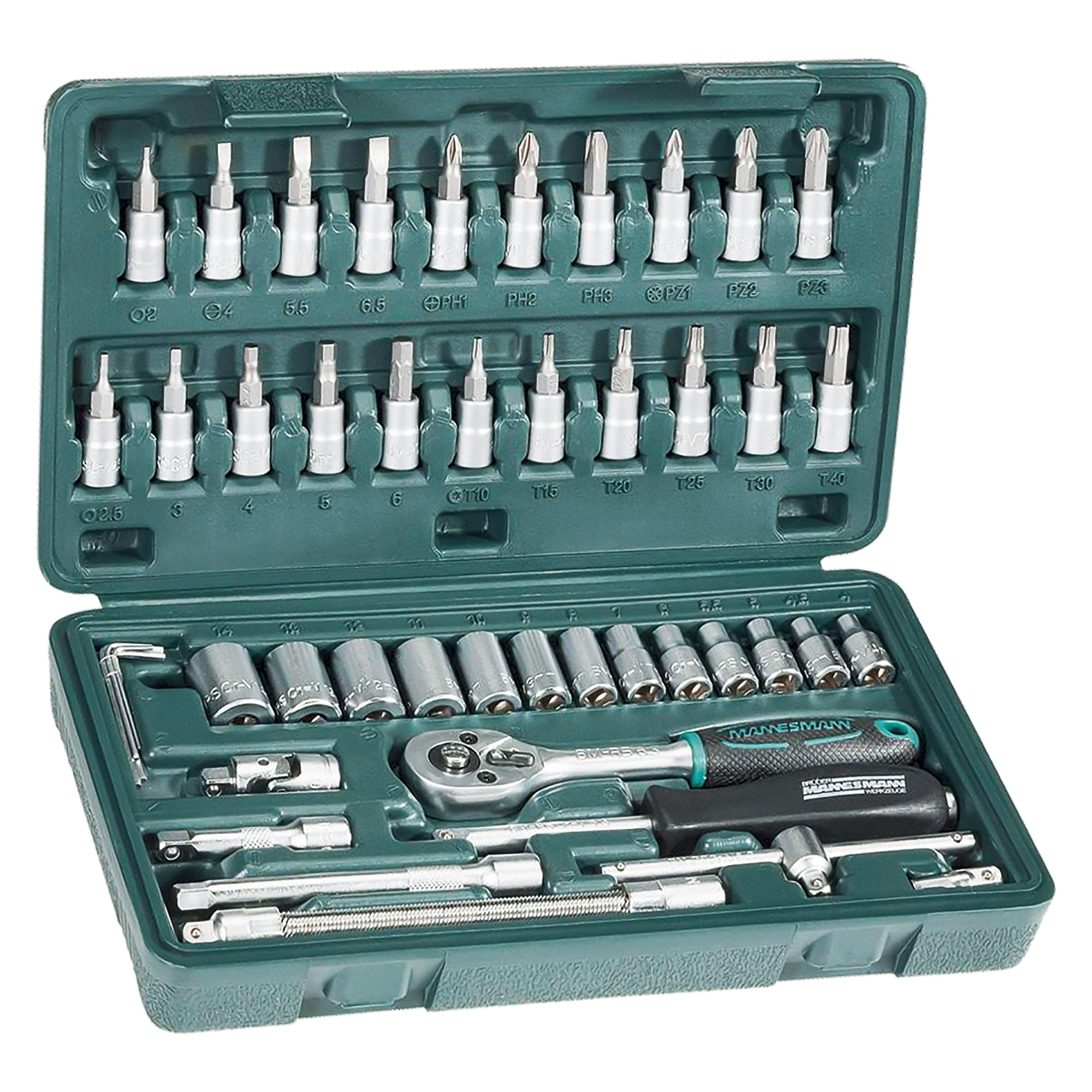 ProductinformatieIn een kunststof koffer, 6,3 mm - 1/4', chroom vanadium staal, afmetingen: (B)244 x (D)142 x (H)52 mm, kleur: zwart / groen.