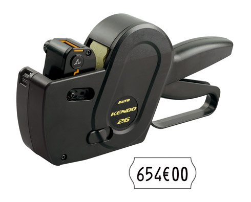 ProductinformatieBevat 1 etiketeertang Kendo met 6 karakters H 4mm + 2 witte etiketrollen + 1 inktrol. Voor het aanduiden van de prijs, het aantal pakken of korte referenties. Ook met het symbool voor de euro.
