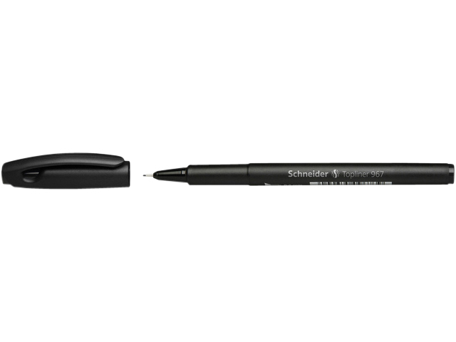 Fineliner Topliner 967 heeft een robuuste schrijfpunt in metalen omhulsel. Hierdoor is deze pen geschikt voor het gebruik van linialen en sjablonen. De cap-off inkt is op waterbasis en droogt niet uit, zelfs niet als de dop 2-3 dagen eraf ligt. Inkt bevat conserveermiddel C(M)IT/MIT waardoor langer houdbaar. De schrijfkleur is herkenbaar aan de dop en uiteinde van de pen. De behuizing bestaat uit mat zwart metallic en is gemaakt van PP voor lange houdbaarheid* Schrijfkleur zwart.* Schrijfbreedte 0.4mm* Inkt bevat conserveermiddel C(M)IT/MIT.* Bestaat uit 82% gerecycled plastic.