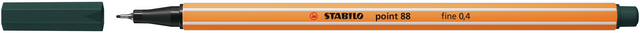 De Point 88: de ideale fineliner voor schrijven, tekenen, schetsen en onderstrepen. Dankzij het brede scala aan prachtige kleuren, waaronder pastel- en neonkleuren, heb je een complete creatieve selectie binnen handbereik. De met metaal omhulde punt en de uitstekende bescherming tegen uitdrogen zorgen voor een hoge kwaliteit en maken van de STABILO point 88 een duurzame fineliner waarop je elke dag kunt vertrouwen. Dankzij de punt die met metaal is omvat, is de fineliner ideaal om te gebruiken in combinatie met een liniaal of sjabloon, er ontstaan geen vervelende vegen meer. Perfect voor creatieve ideeën, of thuis, op school en op het werk. De Point 88 is extra duurzaam, vanaf heden is de dop en penbehuizing gemaakt van 96% bio-gebaseerd kunststof volgens massabalans benadering.* Geproduceerd in Duitsland * Dop en penbehuizing gemaakt van 96% bio-gebaseerd kunststof volgens massabalans benadering* Ideaal voor gebruik in combinatie met een liniaal of sjabloon, dankzij met metaal omhulde punt* Stevige punt, met metaal omhuld voor lange levensduur* Kan lang zonder dop zonder uit te drogen* Lijndikte 0,4 mm* Dop past achterop de pen* Geventileerde dop* Verkrijgbaar in 65 kleuren * De fineliner STABILO point 88 in de kleur: aardegroen (63)