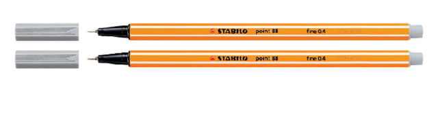 De Point 88: de ideale fineliner voor schrijven, tekenen, schetsen en onderstrepen. Dankzij het brede scala aan prachtige kleuren, waaronder pastel- en neonkleuren, heb je een complete creatieve selectie binnen handbereik. De met metaal omhulde punt en de uitstekende bescherming tegen uitdrogen zorgen voor een hoge kwaliteit en maken van de STABILO point 88 een duurzame fineliner waarop je elke dag kunt vertrouwen. Dankzij de punt die met metaal is omvat, is de fineliner ideaal om te gebruiken in combinatie met een liniaal of sjabloon, er ontstaan geen vervelende vegen meer. Perfect voor creatieve ideeën, of thuis, op school en op het werk. De Point 88 is extra duurzaam, vanaf heden is de dop en penbehuizing gemaakt van 96% bio-gebaseerd kunststof volgens massabalans benadering.* Geproduceerd in Duitsland * Dop en penbehuizing gemaakt van 96% bio-gebaseerd kunststof volgens massabalans benadering* Ideaal voor gebruik in combinatie met een liniaal of sjabloon, dankzij met metaal omhulde punt* Stevige punt, met metaal omhuld voor lange levensduur* Kan lang zonder dop zonder uit te drogen* Lijndikte 0,4 mm* Dop past achterop de pen* Geventileerde dop* Verkrijgbaar in 65 kleuren * De fineliner STABILO point 88 in de kleur: lichtgrijs (94)