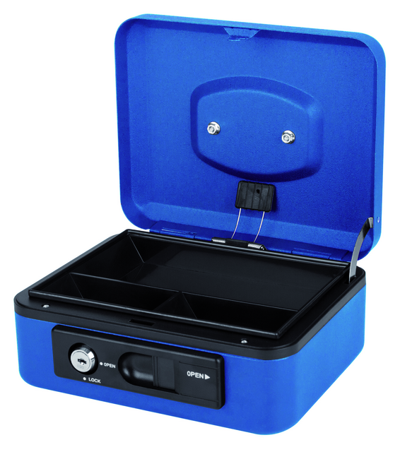 Kunststof muntautomaat met 3 compartimenten, inklapbare handvat.