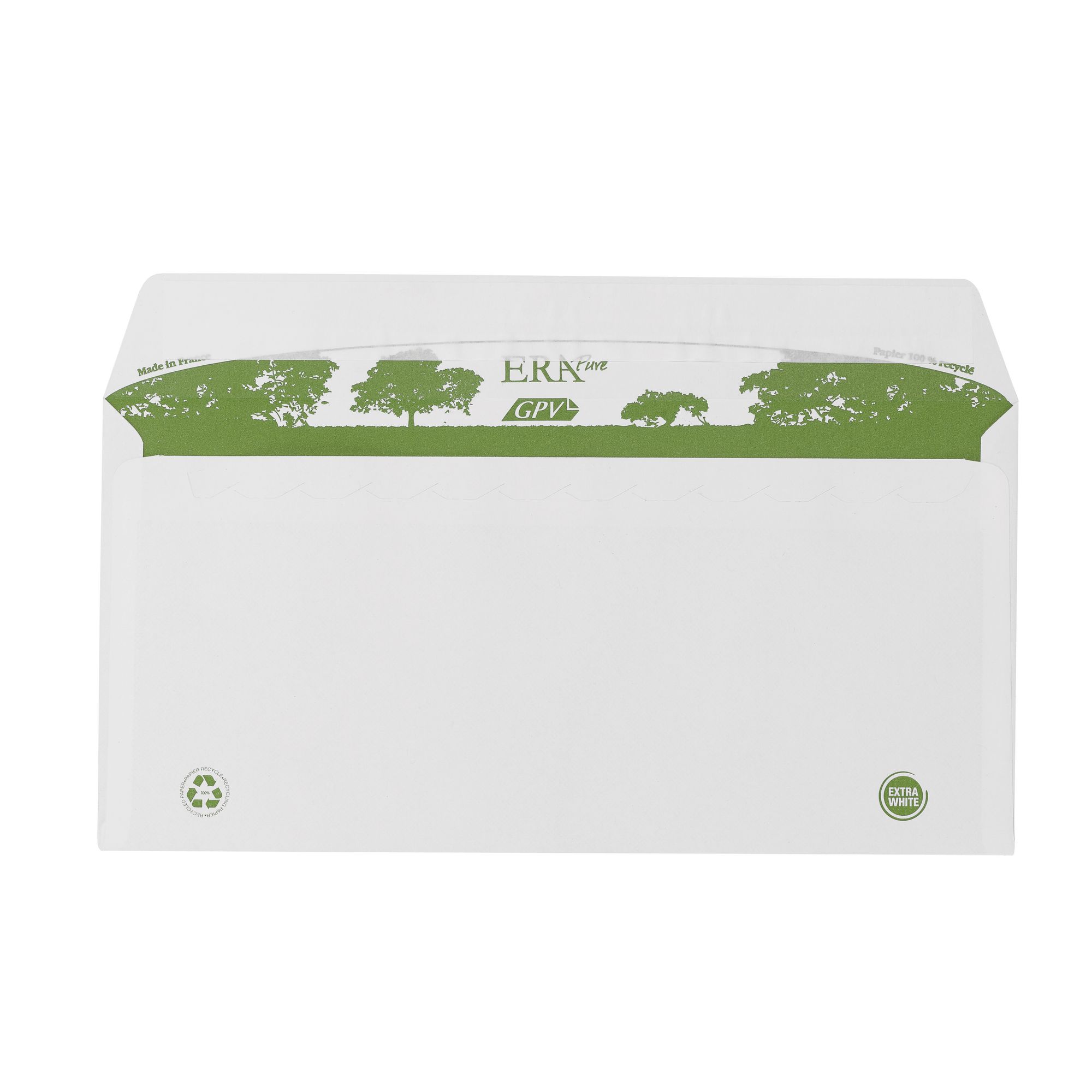 ProductinformatieExtra wit papier 80 g, 100% gerecycleerd. Zonder chloor. Inkt op basis van water. NF-certificaat voor kleefmiddel op flap. FSC. Enveloppen en venster zijn voor 100% recycleerbaar. Doos van 500 enveloppen.
